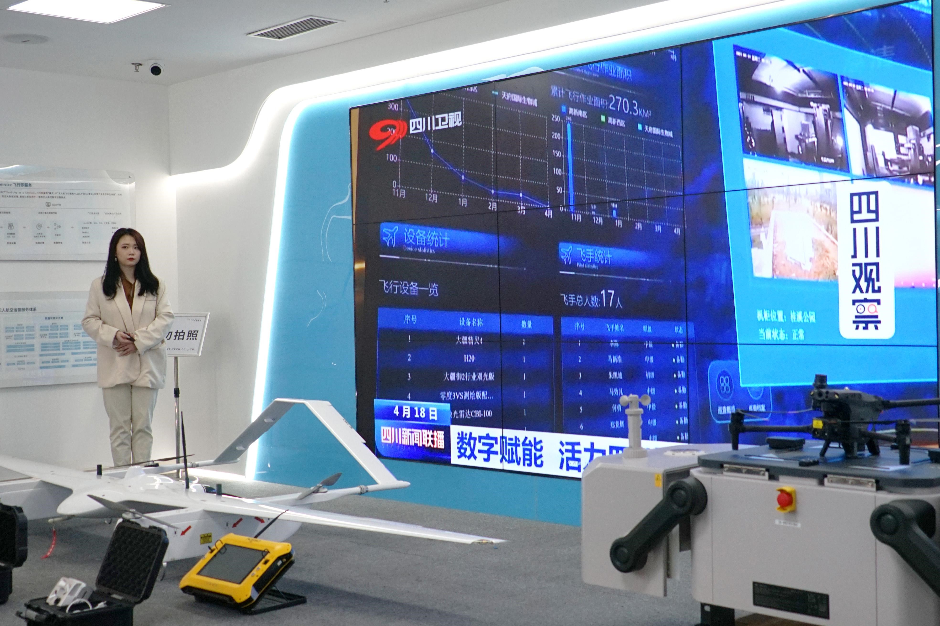 接著,攜恩科技為工博研會的師生們展示了如何通過無人機運營調(diào)度指揮平臺實時查看正在執(zhí)行任務(wù)的無人機、飛手、車輛位置信息,并將采集到的畫面實時回傳至現(xiàn)場大屏,供大屏前的師生們觀看無人機拍攝到的真實畫面。這也是成都高新區(qū)無人航空智慧治理板塊的重要組成部分,并已落地應(yīng)用到社會治理中的環(huán)保巡查、應(yīng)急搜救、公共安全、違建巡查、交通巡查、疫情巡查等場景。